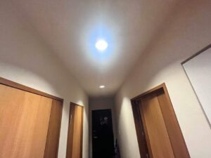 ビフォー写真と見比べていただくと明かりの広がりが天井付近まで広がり、前より明るくなったのが写真でもわかると思います。ビフォー写真 ↓
