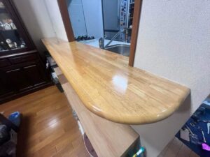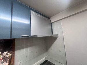 その他、細々としたお困りごと、キッチンレンジフード交換、カウンターのクリア塗装、建具のレバーハンドルや戸車交換、ベランダサッシの敷居部分の剥がれたシート張替、ピクチャーレール交換なども行いました。