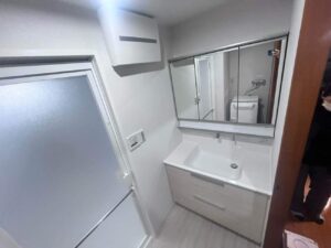 洗面室は床壁天井の内装も張り替えたので、キレイに仕上がりました。