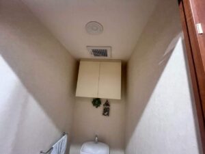 トイレの換気扇は洗面室と連動している珍しいタイプの2室換気でしたが、こちらも交換しました。