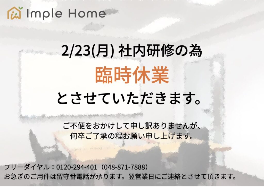 2/23(月) 臨時休業のお知らせ