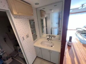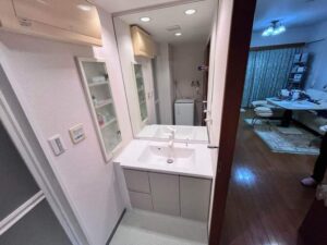 そこで、少しサイズの小さな間口90cmタイプの洗面台に交換しました。