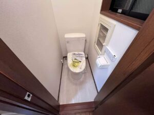 1階のトイレは、階段下の為、少し狭くて圧迫感がありましたので、TOTO ウォシュレット⼀体形便器 GGA1 床排⽔リモデルタイプ 手洗いなしを採用しました。タンクレストイレでは無いのですが、タンクが目立たないタイプですので、見た目もスッキリ少し広く感じます。