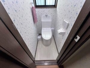 床クッションフロア・壁天井クロスを貼り替えて、キレイで気持ち良いトイレに生まれ変わりました~\(^o^)/