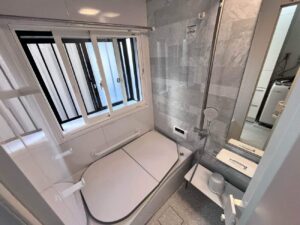 先ずは浴室ですが、老朽化したバスルームを新しく交換するにあたり、省エネキャンペーン2025補助金を申請する為に、バスルーム交換+内窓インナーサッシ取付工事を施しました。